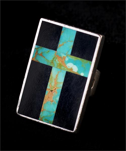 LIMITED EDITION S/S RECTANGLE TURQUOISE AND JET CROSS RING